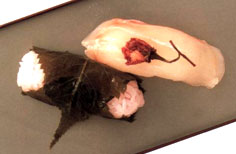 - Ингредиенты: щупальца осьминога суши-рис лист нори японский хрен